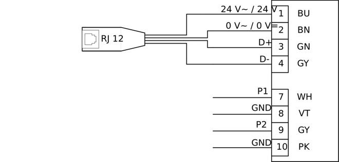 Voltage and communication connection | Factory fitted cable with RJ12 socket / terminals |