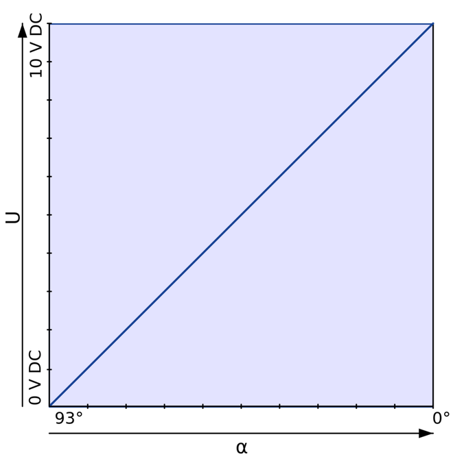 The output signal is mapped to the entire rotation angle 0 - 93° of the actuator.